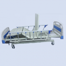 The bed is equipped with a pair of side rails made of aluminum that can be folded on both sides of the bed quietly and easily to transport the patient..